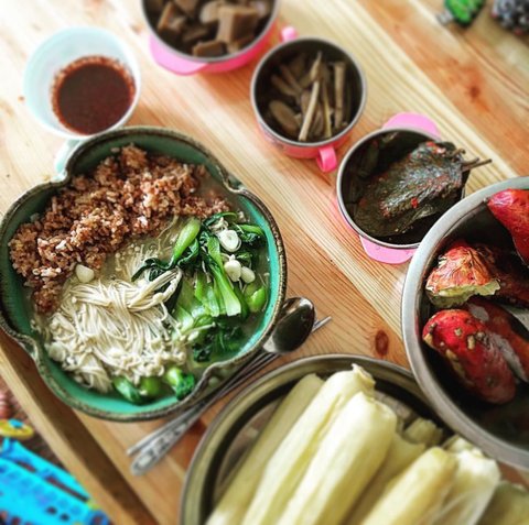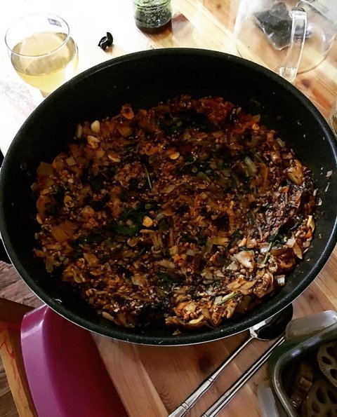 버섯, 청경채, 마늘, 양파로 덮밥해먹었어요.