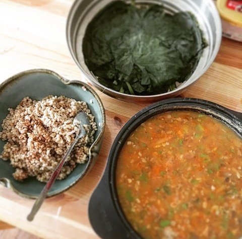 호박잎과 강된장찌개입니다^^