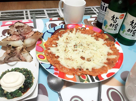 일끝나고 온 신랑이 먹고싶다는 김치전을 만들어봤는데, 저희둘다 치즈 덕후라ㅋㅋㅋ 김치 치즈전으로 만들어서 먹었네요. 반건조 오징어와함께 소맥을ㅋㅋ