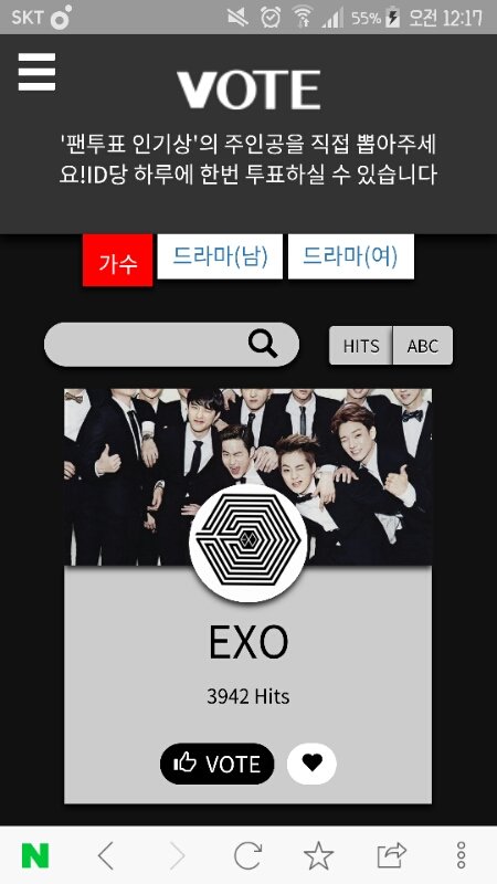 1. 팬투표 인기상 투표 EXO에 하고와 언제 또 떨어질지 모름 ☆네이년, 블베 아이디로 1초만에 로그인됨☆ 투표 종나 쉬우니깐 꼭 해 드라마(남)은 백현 투표ㄱㄱ 1일1투표