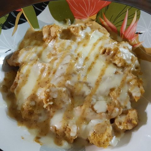이건 닭가슴살을 후추넣고 다 익도록 볶아준다음에 치즈넣고 녹이고 참깨소스 뿌려줬어요.