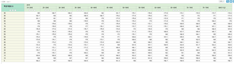아래 표는 2015년 측정된 대한민국 남성들의 평균 신장입니다.