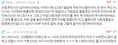 베플 하나랑 베플에 달린 대댓글만 가져왔습니다.
