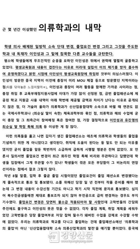 … 학생들 "총장 사퇴하라" 반발