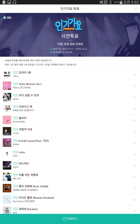지금 3주차 진행중이야! 매일 하루에 3표씩 투표하자