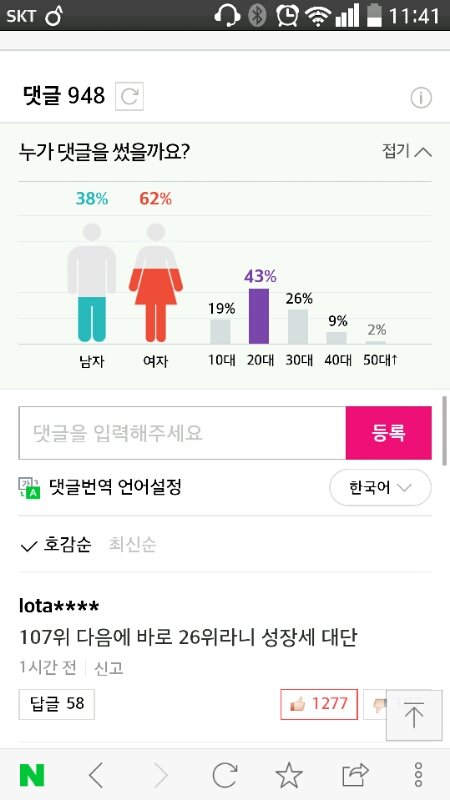 네이버 메인 뉴스 보다가 20대 비율도 많다~ 자꾸 급식이라고 비하하는데 실상 20대도 많다는거 지금 비율은 20 30 10대순이네 ㄷㄷ 참고로 나도 30대초초반^^+