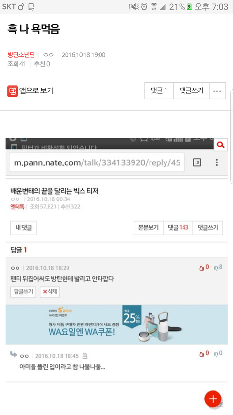 흑 나 욕먹음 어그로 캡쳐있어 들어가지마