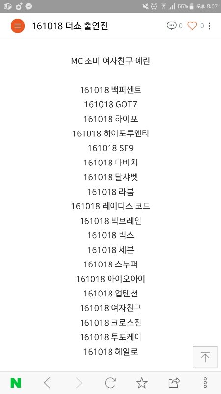 오늘 더1쇼 나올랑가?