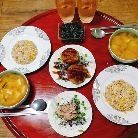 볶음밥&버섯두부된장국&김&패티&새싹 참치