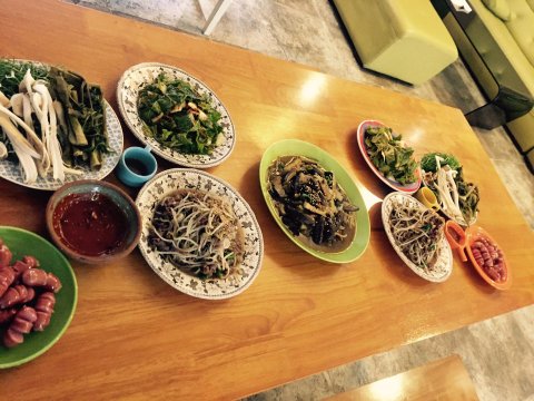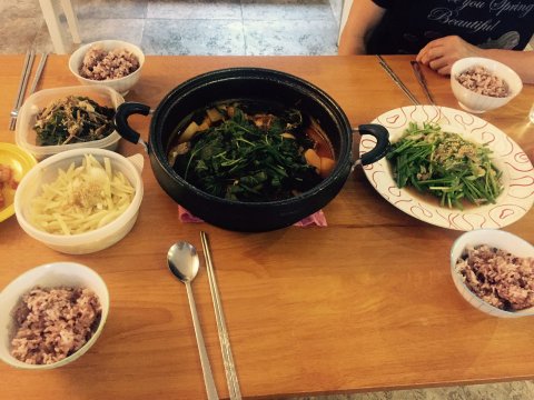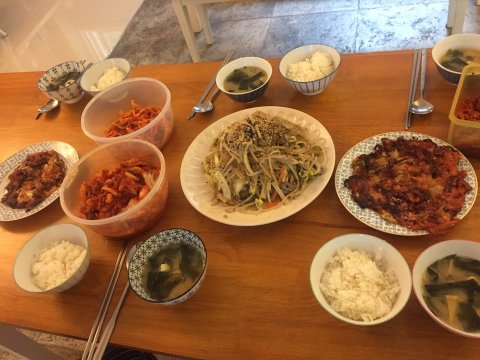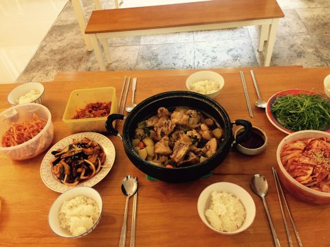 저 외 일해주시는 이모님 , 중국인 친구 , 사촌동생둘 과 함께 점심을 먹어요