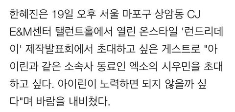 한혜진님 또 시우민 언급하셨어ㅋㅋㅋ