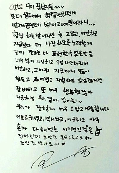 헐. 보이니 벌들아..??2000일날 표지훈이 우리에게 쓴 편지 기억하는 벌들..??