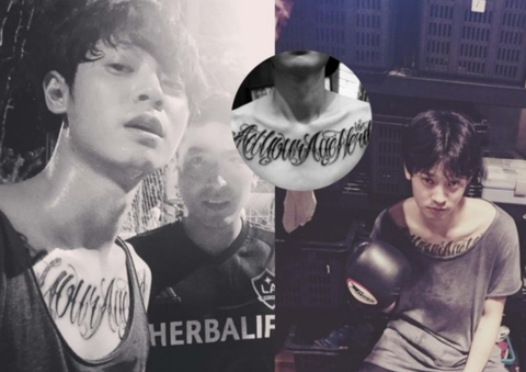 가슴에 하고 있는 타투는 '치카노 레터링'으로 Act your age, nerd