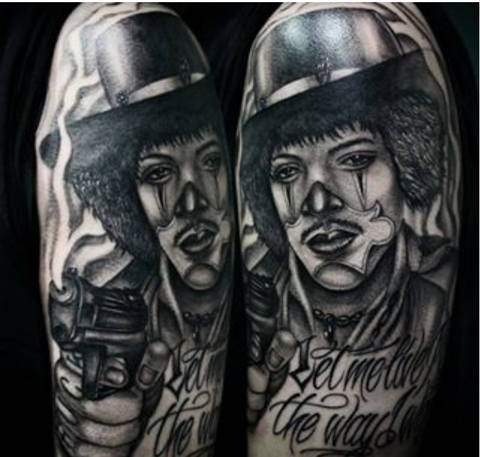 왼쪽 어깨에 있는 타투는 기타리스트 '지미 핸드릭스'