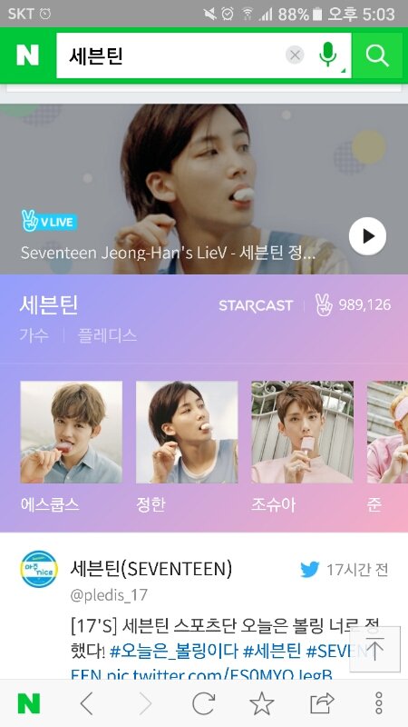 초록창에 세븐틴 치면 공식색으로 뜸ㅋㅋㅋㅋ대박...예브다