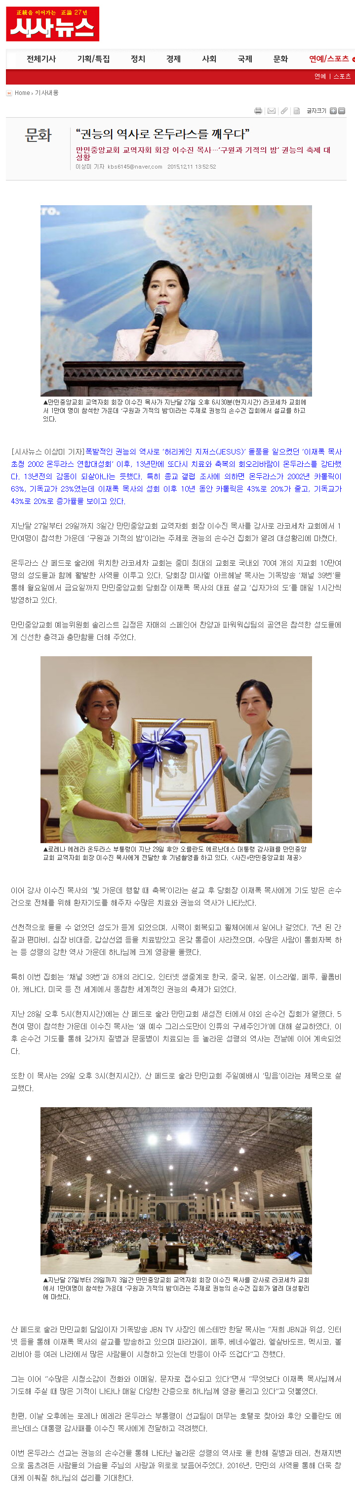 Herald, 한국일보, 경인일보, 문화일보, 시사신문, 시사포커스, 월요신문, 기독교신문, 크리스챤신문, 교회연합신문, 크리스찬가이드,
