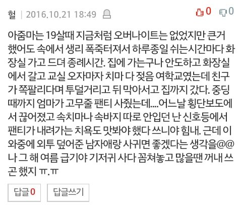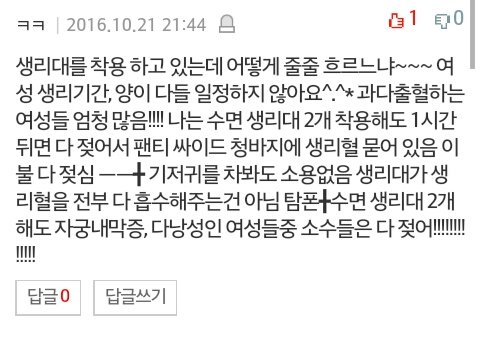 필력이 없는건 내가 어쩔수가 없네 그리고 내가 잘 때 생리대 착용했고
