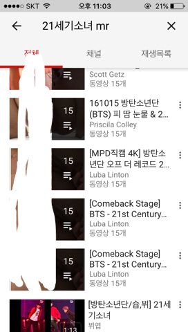 내가 피땀눈물 엠알제거 보다가 21세기소녀는 없나 하고 검색했는데 저런 재생먹록들이 떠서... 왜 가렸나면 그 여자가 자기위로...? 하는 그헌 영상같은거 있어서 ㅠㅠㅠㅠ 진짜 보고 깜짝놀랬어 헉 머지 하고 재생목록 들어가봤는데 (그영상은 안봤어!!ㅠㅠ) 그 ㅈㅇ영상이 첫번째고 그 다음 영상들은 방탄영상이나 다른 영상들이였어 어쩌지?ㅠㅠ 방탄이들이 보ㅁㅕㄴ 어떡해 ㅠㅠ