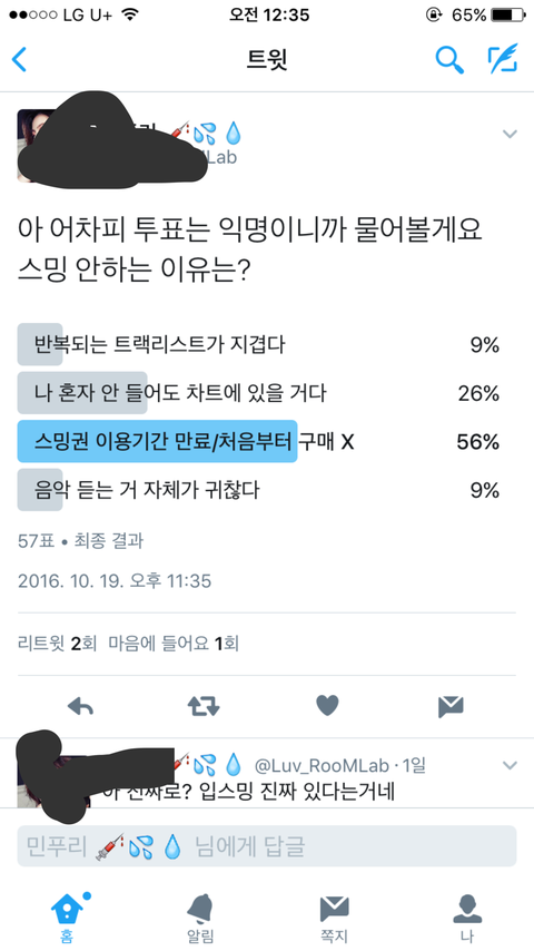 한데 스밍부터... 우리회차로4년인데1년차보다화력이약하면어쩌자는건지난도저히모르겠다 이딴식으로스밍해서뭘하겠다는건지도모르겠고 짹짹이에서어떤분이스밍안하는이유투표했었는데스밍권자체가없어서랑있는데안하는거제일많더라 진짜입스밍들팬아니니까탈덕길만걷길 진짜