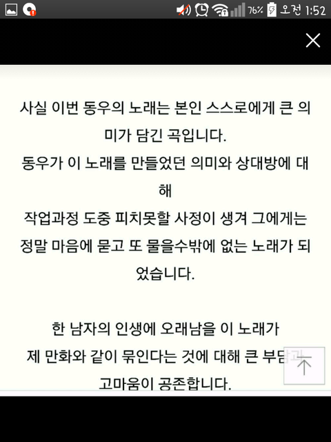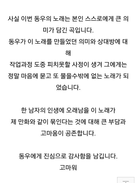 이노래는 동우에게는 정말소중한 곡이고 큰의미가