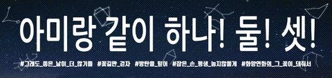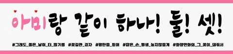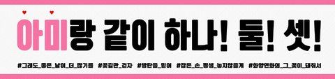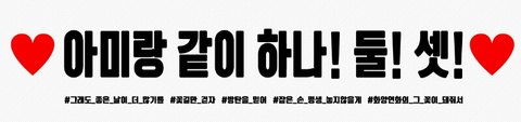 다가져와봤어^-^팬밑때 나눔할슬로건인데 좀더 완성본으로 여러개 맹그러와써!!내가 급해가지고 글씨체나 이런걸 완전히 다못바꿔서ㅠ간격이나 위치도 조금씩 세세하게 못했으니 자세히 보지말구 어떤게좋은가!!