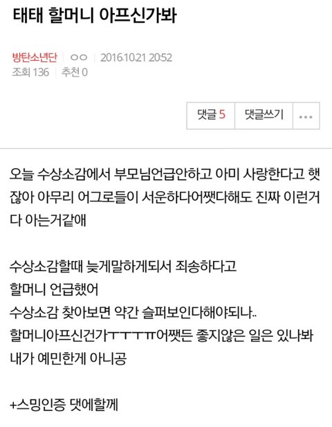태태 할머니 아프신가봐