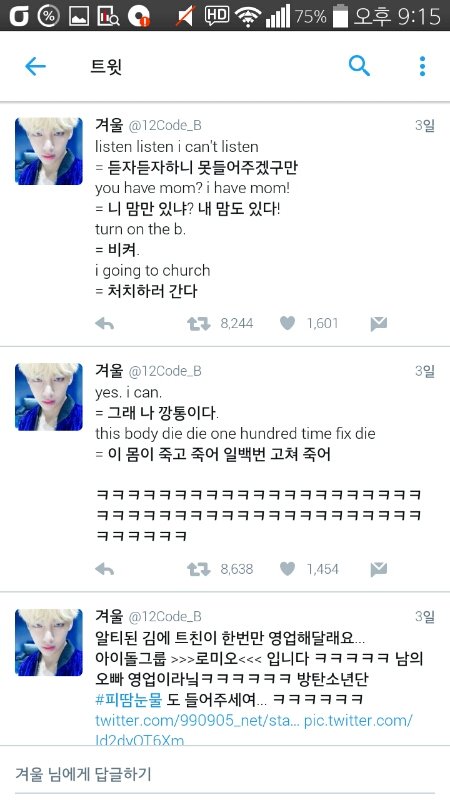 팬싸(?)였나 거기서 윤기 드립친 겈ㅋㅋㅋㅋㅋㅋㅋㅋㅋㅋㅋㅋㅋ 보고 이해 못하다가 한참을 웃어제꼈다는..