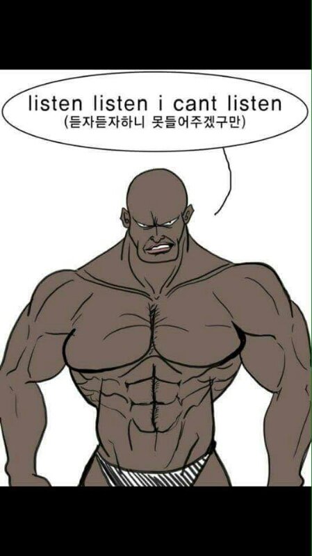 listen(듣자) listen(듣자) I can't listen(못 들어주겠네).. 이런 뜻이야.. 원래는 다른 뜻인데 그냥 드립이라고..