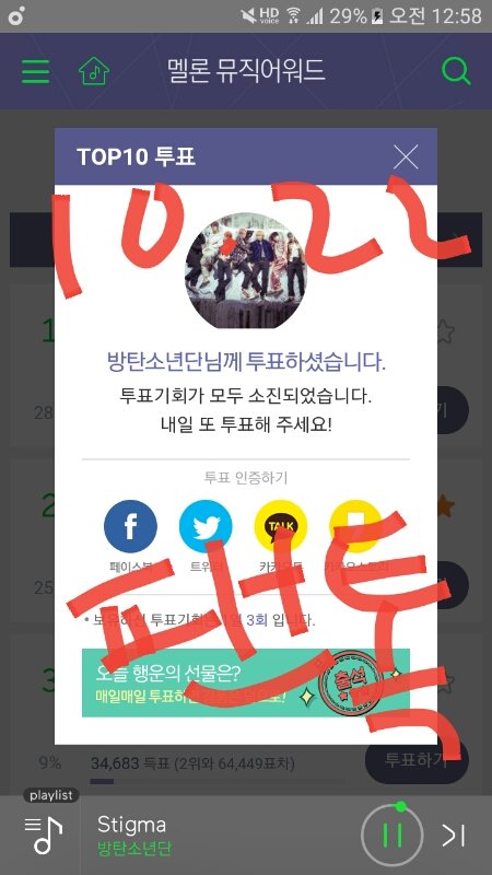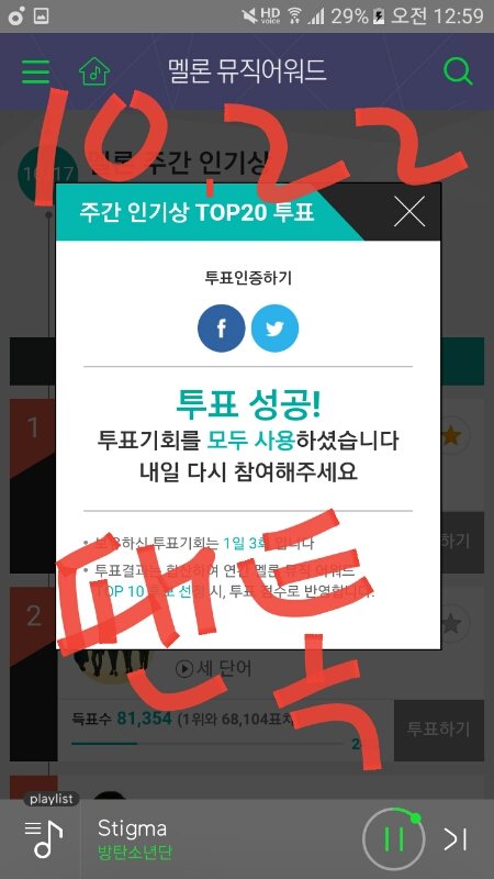 멜론앱에서 메뉴에 멜론뮤직어워드 -> TOP10투표 이용권있음 세번투표, 이용권없어도 한번투표가능!