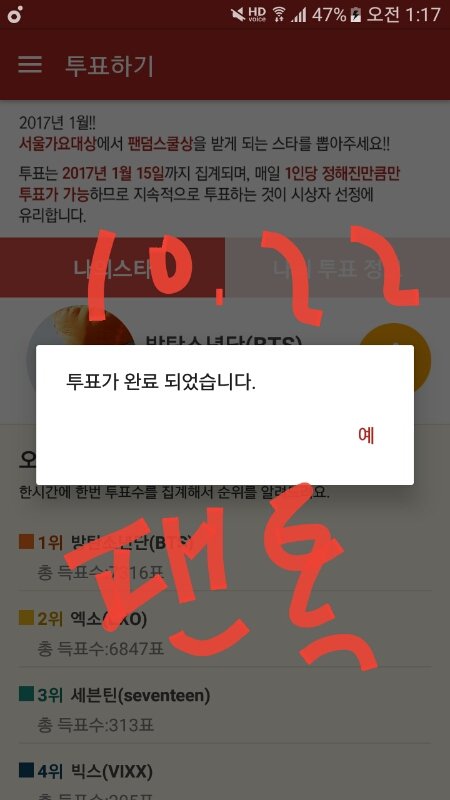 이삐들! 투표주소 올려놓을게 애들손에 1위 쥐어주자!!