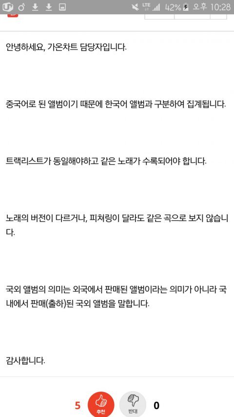 자기들말로는 국외앨범이라면서 국내앨범차트에 한국어버전따로 중국어버전따로 순위에 기재됨
