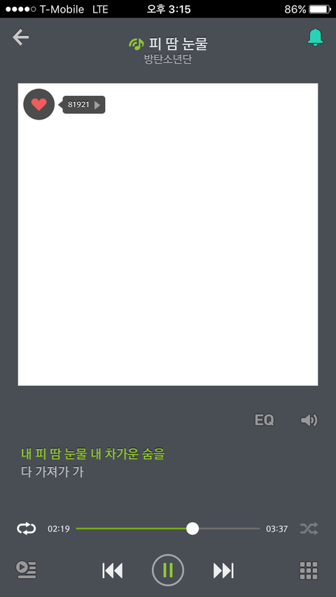 피 땀 눈물 들을때 표지 만 안 나오는데