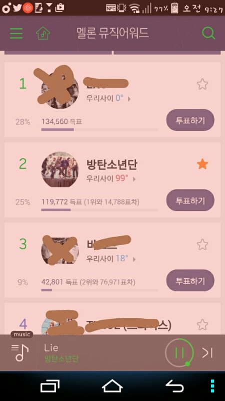 오늘도 멜뮤 투표 해라 왜 우린 다 2등이야?