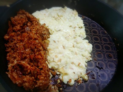삼각김밥으로해야했지만 나는 편의점을 다녀올 자신이 없었기에 김치볶음밥을 만들고 치즈를 함 근데 조카 한1라2산 뭐시기가 아니라 저주의 음식이 나옴 신발ㅋ
