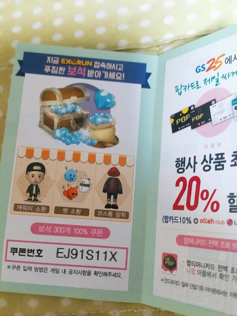 엑소1런 쿠폰번호다