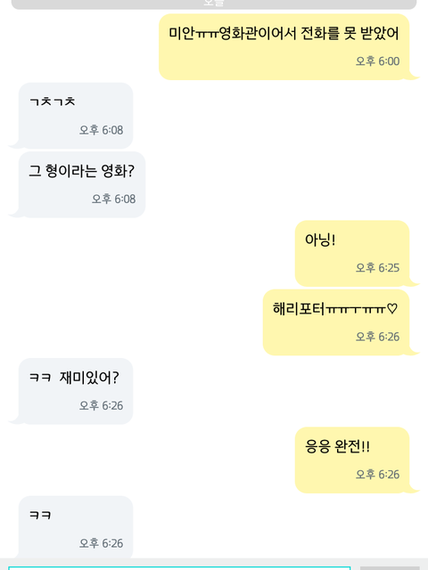 ㅅㅣ발ㅠㅜㅜㅠㅠㅠㅠㅠ제일 감격스러운게 난 얘한테 횽 언급한적도 없는데 영화보러갔다고 해서 횽 보러갔냐고 말해준거...아 횽...횽....조카 설렌다