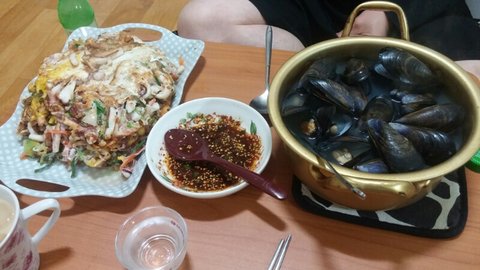 시원한 국물이 뭐가 있을까 싶어서 홍합탕이 딱이다 싶어서 홍합 손질하고 빡빡 씻어서 해감한다음 칼칼하게 끄린 홍합탕 ♥