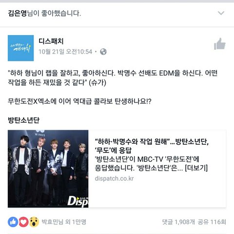 방탄 이색기들도 무도 버프 함 받아볼라고 이카네