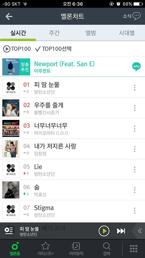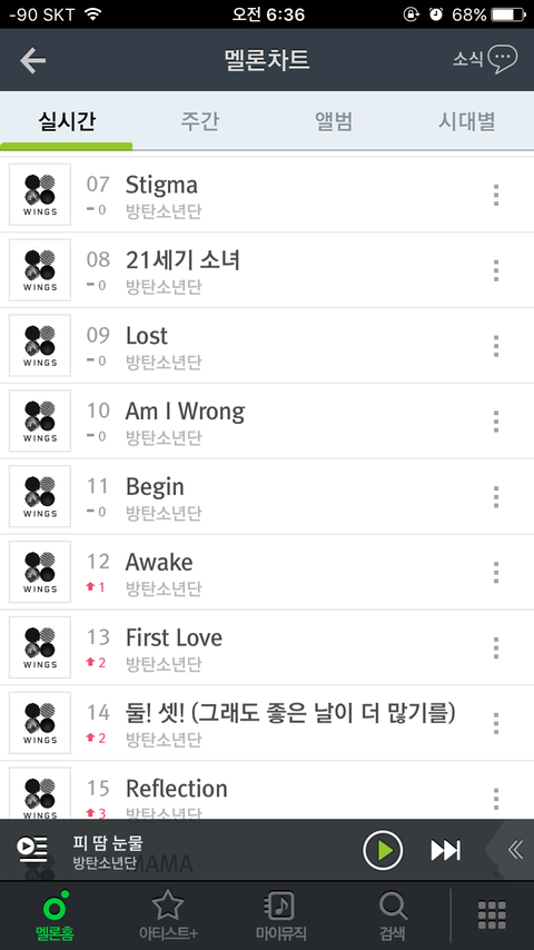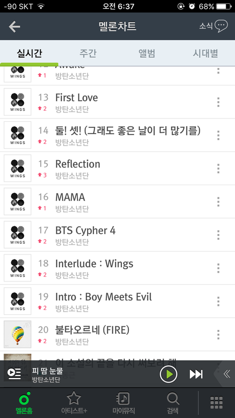 20개 음원 중 16개가 방탄꺼야
