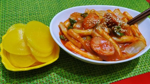 편의점 왕소세지를 썰어넣고 만든 떡볶이예요. 저는 떡볶이를 좋아하는 편이 아니라서 떡보다 다른 부재료에 더 신경을 쓰는편인데 이날 왕소세지꼬치가 냉장고에 하나 있어서 넣어봤네요. 맛있었어요^^