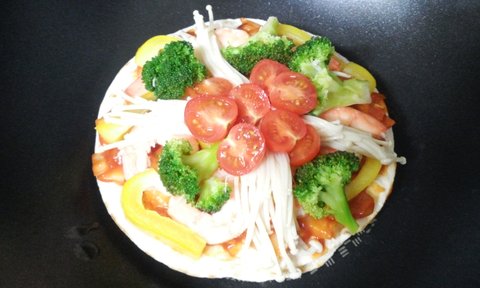 또띠아피자를 만들었어요. 피자먹고 싶은데 다이어트중이라서 칼로리생각하면서 집에 있는 채소들로 만들었네요.. 마지막에 스트링치즈 찢어 올려서 구웠다는건 안비밀.. ㅋㅋ