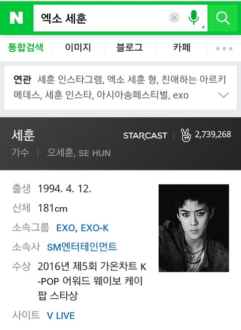세훈을 검색하면