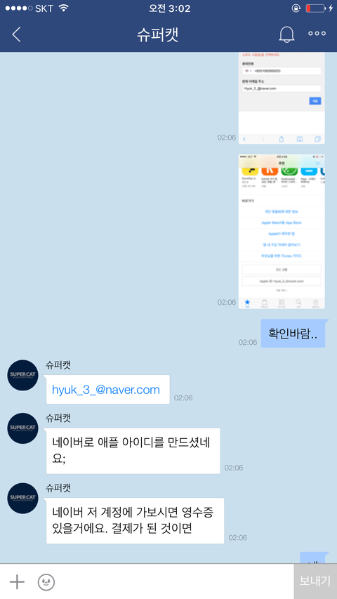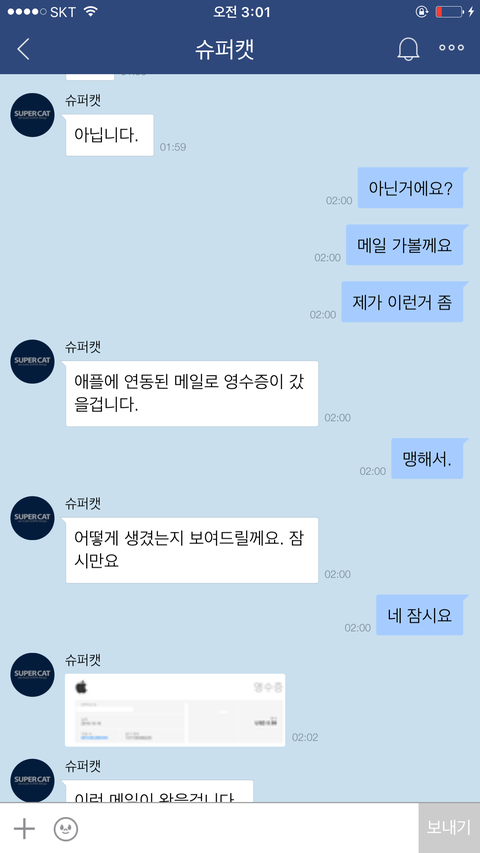 그런데.........없는 이메일내 영수증을 어떻게찾아오라는건지 3시간동안 그 문제에대해 서로 같은말만 했습니다.애플은 이메일로 영수증을 발부하지않는다. 아니다 틀렸다 이메일로 영수증을 보내게되어있다.