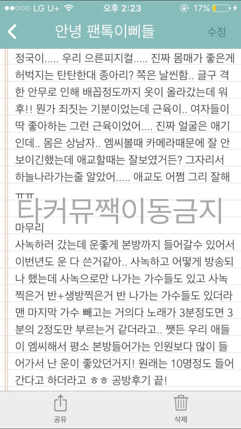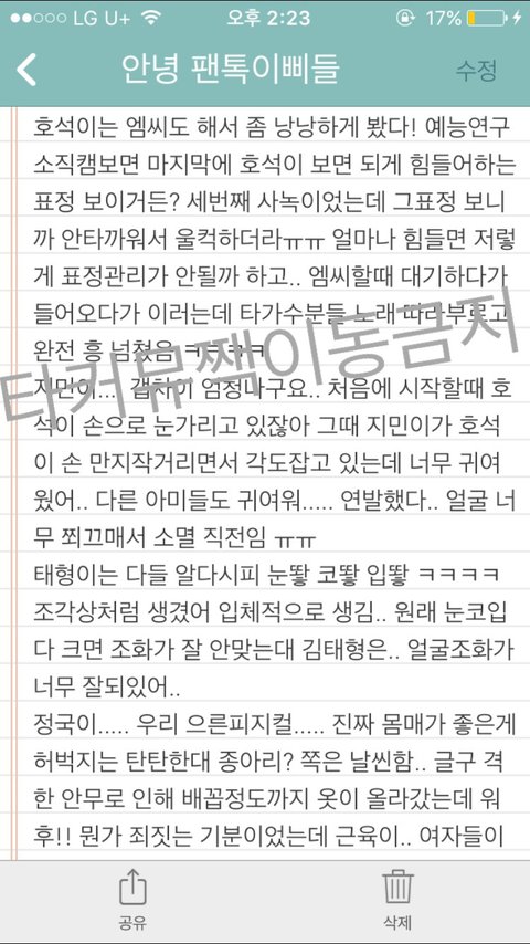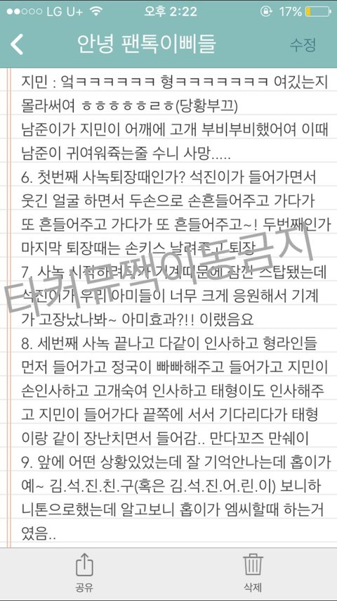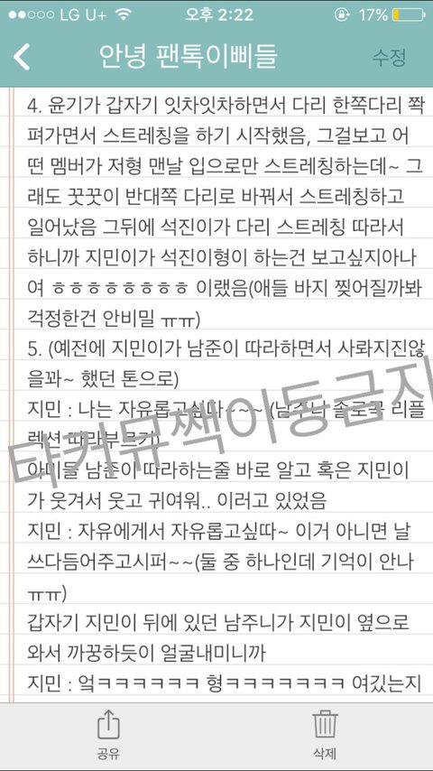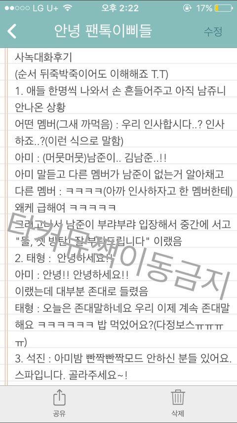 너무 많아서 메모장에 썼고 맞춤법 틀리더라도 너그럽게 이해해죠~ 팬톡에서만 보고 타커뮤나 짹으로는 안 옮겼으면 좋겠다