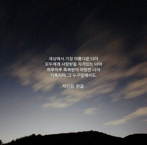 이런거 밤이나 새벽에 보면 힐링되지않니? 마음도 정리되는거같고ㅋㅋㅋ 그래서 사진 짱 많은데 다 댓글에 올릴게!! 너희도 공유해줘ㅎㅎ 명언이든 글귀든 그냥 글자있는건 다 괜찮앙 댓글이 귀찮다면 추천이라도..//_// 글 삭제 걱정은ㄴㄴ