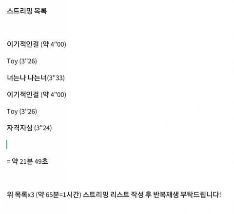 솔직히 저거 캡쳐하는데 시간 별로 안걸리잖아? 글올릴때마다 스밍하는 거 같이 캡쳐해서 올리자. 이기적인걸 토이 너나나너 자격지심 넷 중 아무거나 올려도 되니까...
