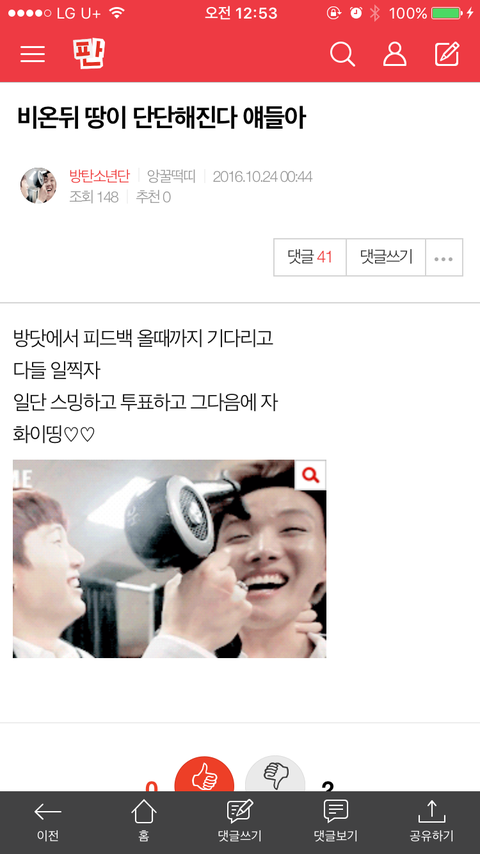 하 너무힘들고 억울하지만 이글보고 위로받음.,..꿀떡아...너 ㅇㄱㄹ아니지???아닌거지? 꿀떡아 나 그 드라이기움짤이 이제 좋아지고...너한테정들것같다...처음봣을땐 그냥 ㅇㄱㄹ엿는ㄷㅔ 점점 좋은글올리냐 꿀떡? 지금 상황에는 니가너무좋다...위로되...스밍하자...음원강자나오셧다..
