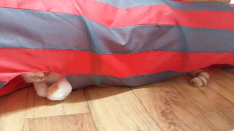 도칠이 터널 중간 구멍에 발과 꼬리로 본인의 존재를 알리며 숨음.