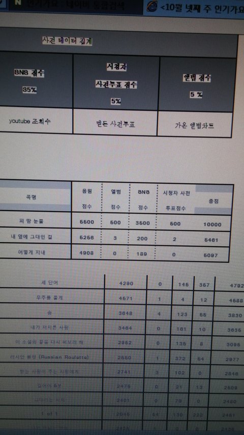 인가 1위 ㅜㅠ 문투만 있었으면 만점이고 애들이 생방중에 점수 봤으면 진짜 더 좋아했을텐데 ㅜㅠㅠ 아쉽다 그래도 1등!! 뮤비 열심히 돌려서 이번주도 1위 ㄱㄱ