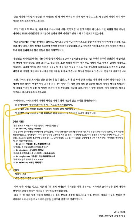 아까는 내가 너무 화나서 쓴글이었고 어쨌든 어그로 있었고 또 누군가가 조작했다는것도 알아두라고 그리고 나도 다시는 저런 동조하는 아미들 없었으면 하는바램이고. 그래도 불행중 다행인건 저 문제가 되는 대다수의 글을 한사람이 지속해서 썼다는거. 난 저사람이 어그로가 아닐까 생각했던건데 미안해 생각이 짧았던것같아 만약 다 다른 사람이 썼으면 더 짜증나고 부끄러웠을것같고.